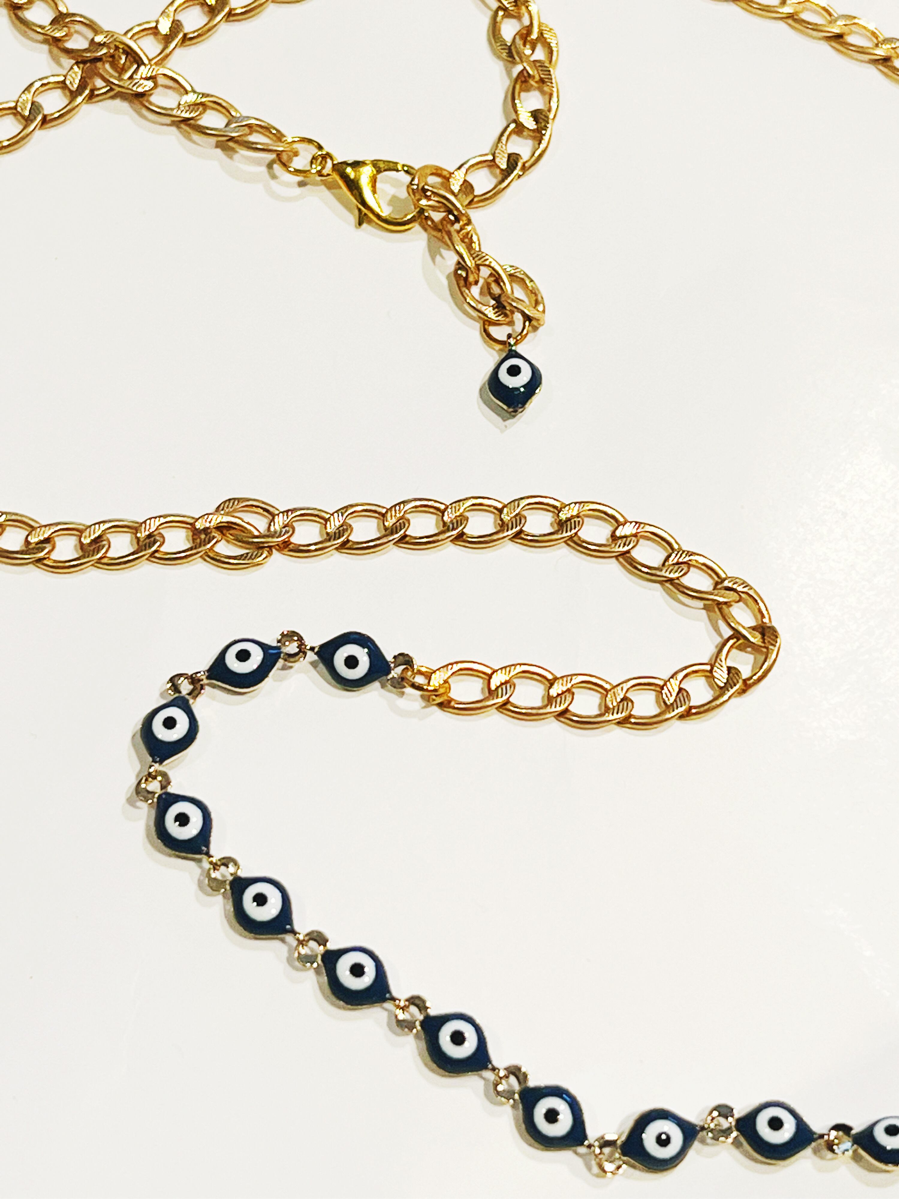 オスマン帝国の時代にも流行っていそうな古代金とのコンビネーションは、マルチな場面でイーブルアイの力を借りれそうなアクセサリー。